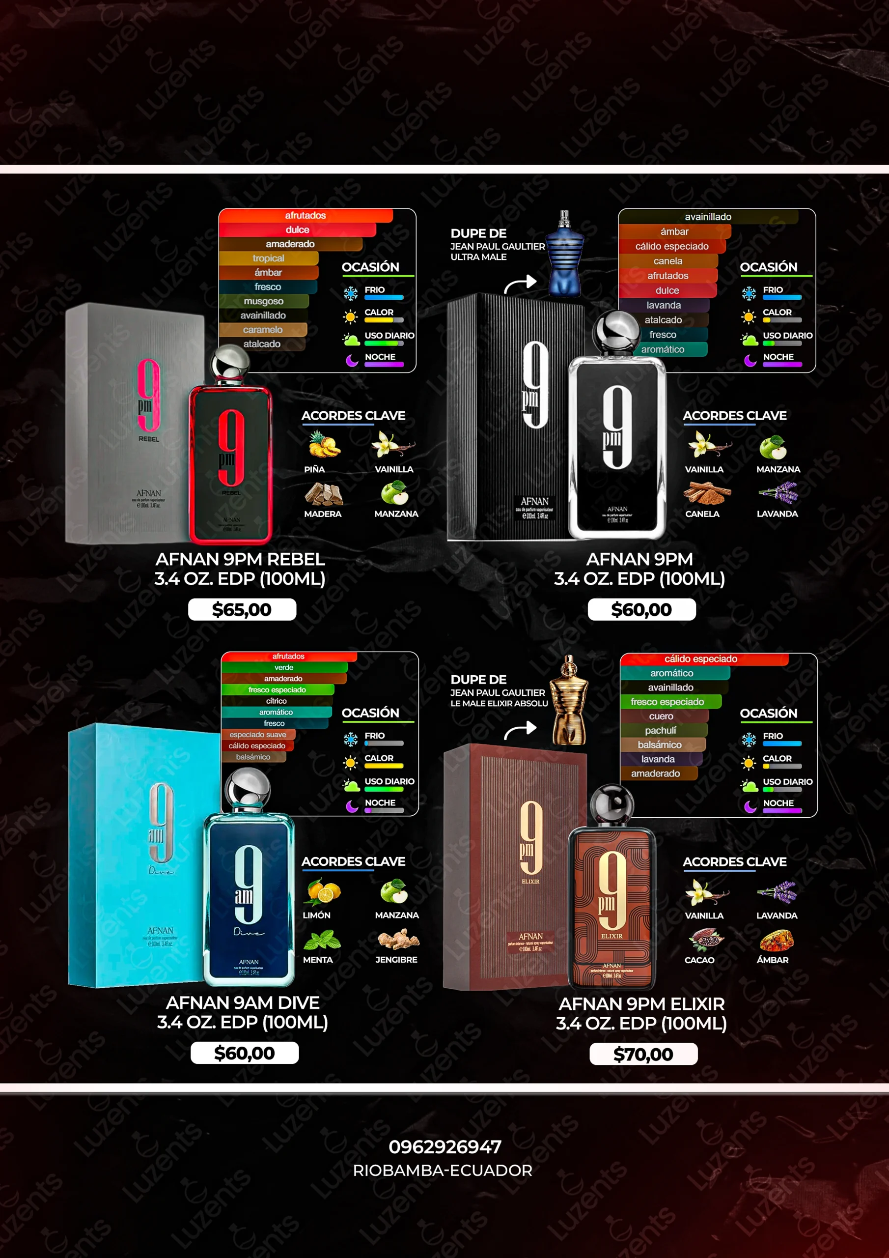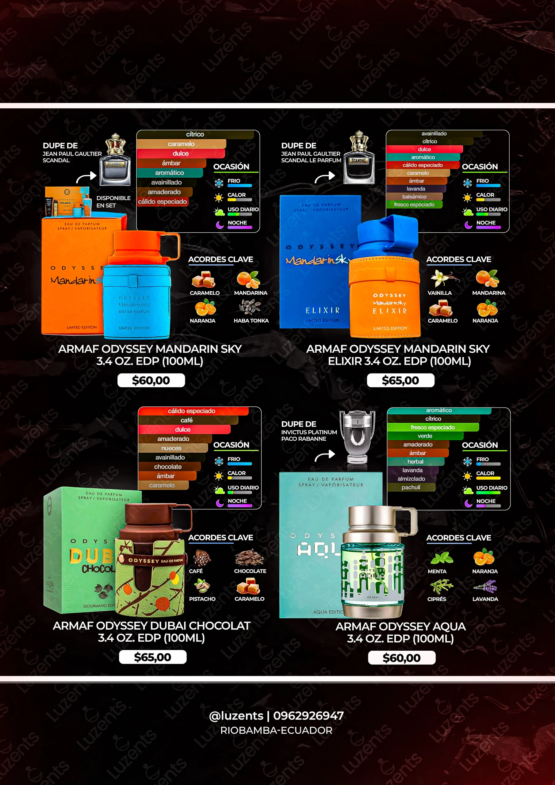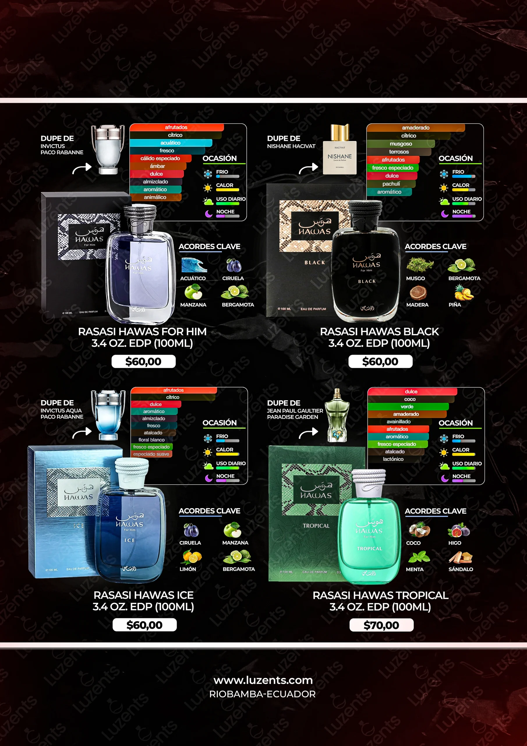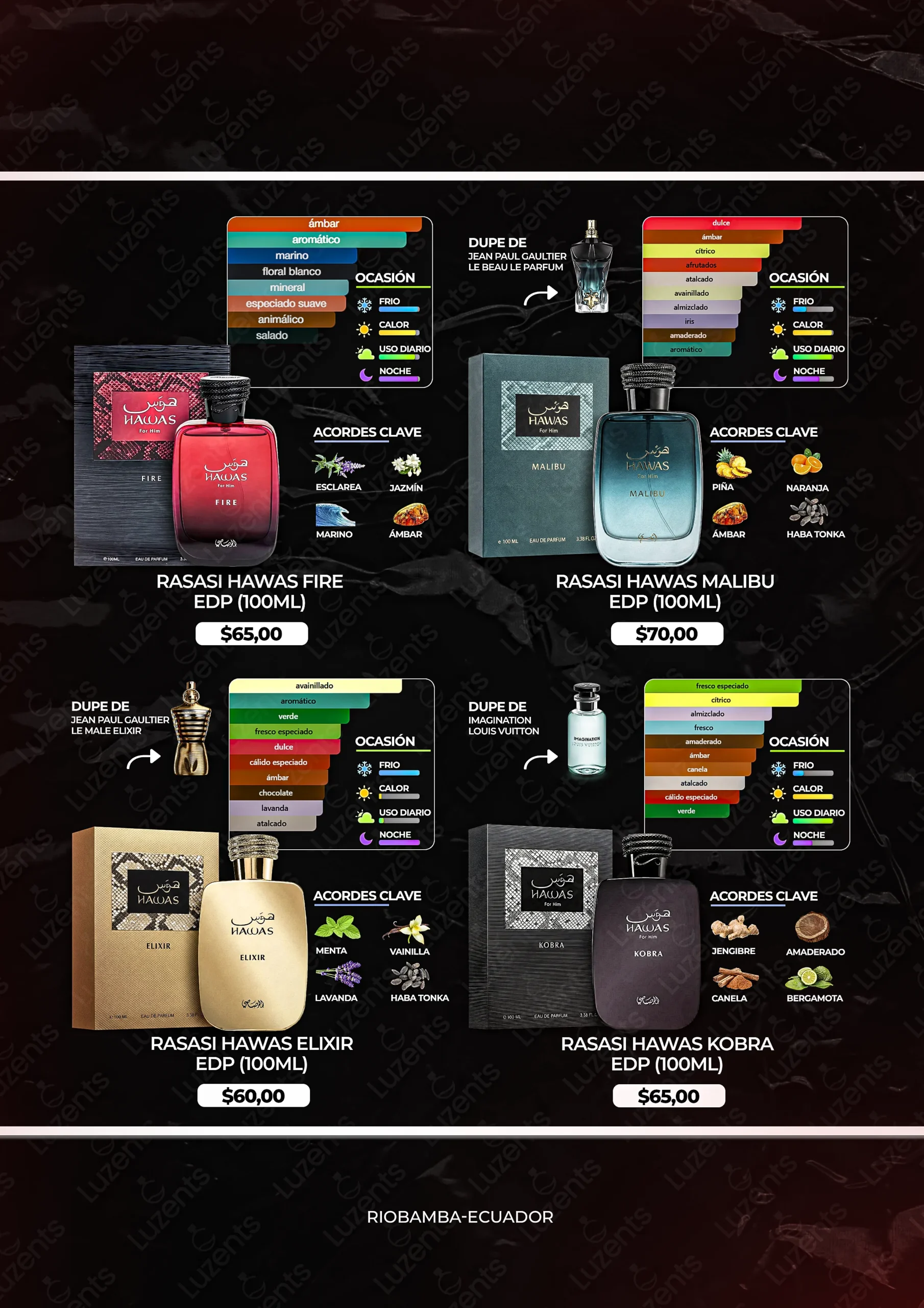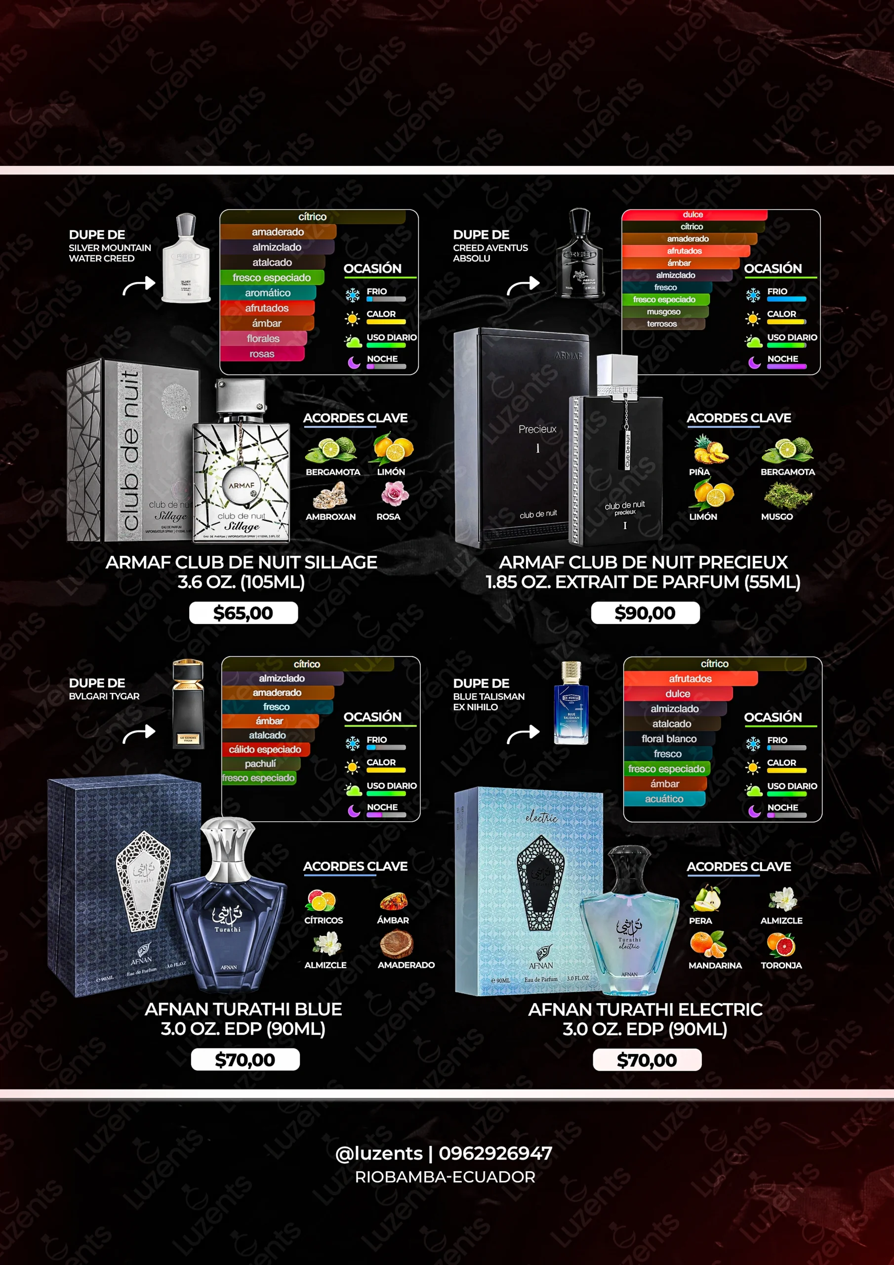 Bienvenido al catálogo exclusivo de Luzents, donde encontrarás la mejor selección de perfumes originales y decants en Ecuador. Nos especializamos en traer para ti las fragancias más deseadas de casas de diseñador y la mejor perfumería árabe, garantizando autenticidad en cada gota.